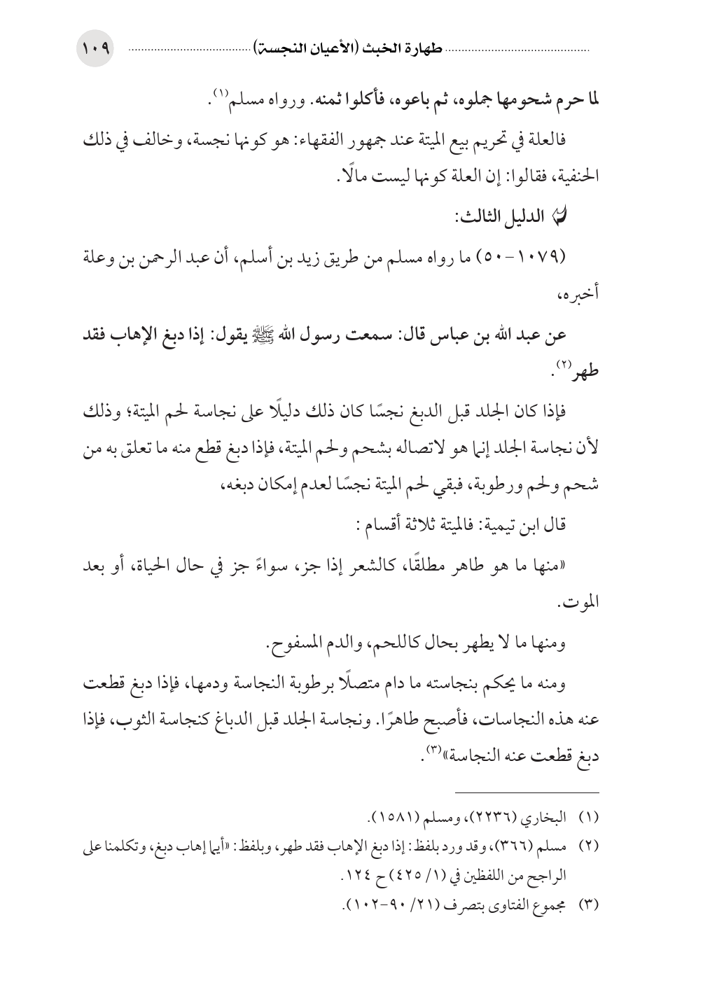 (¬٢) مسلم (٣٦٦)، وقد ورد بلفظ: إذا دبغ الإهاب فقد طهر، وبلفظ: «أيما إهاب دبغ، وتكلمنا على الراجح من اللفظين في (١/ ٤٢٥) ح ١٢٤.