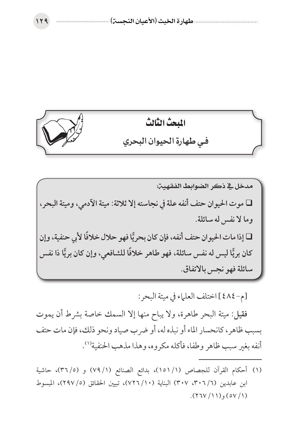 (¬١) أحكام القرآن للجصاص (١/ ١٥١)، بدائع الصنائع (١/ ٧٩) و (٥/ ٣٦)، حاشية