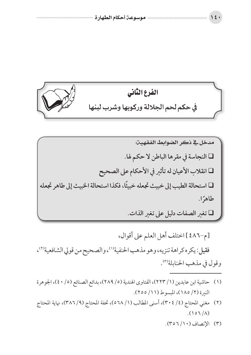 الفرع الثاني في حكم لحم الجلالة وركوبها وشرب لبنها