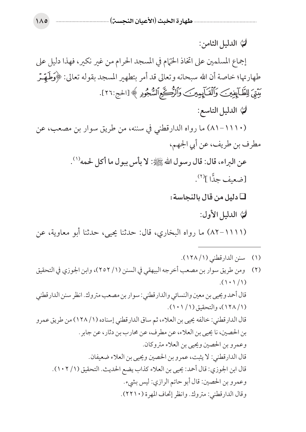 (١١١٠ - ٨١) ما رواه الدارقطني في سننه، من طريق سوار بن مصعب، عن مطرف بن طريف، عن أبي الجهم،