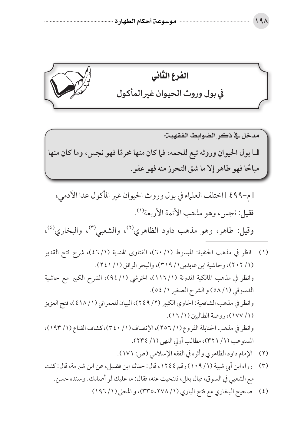 الفرع الثاني في بول وروث الحيوان غير المأكول