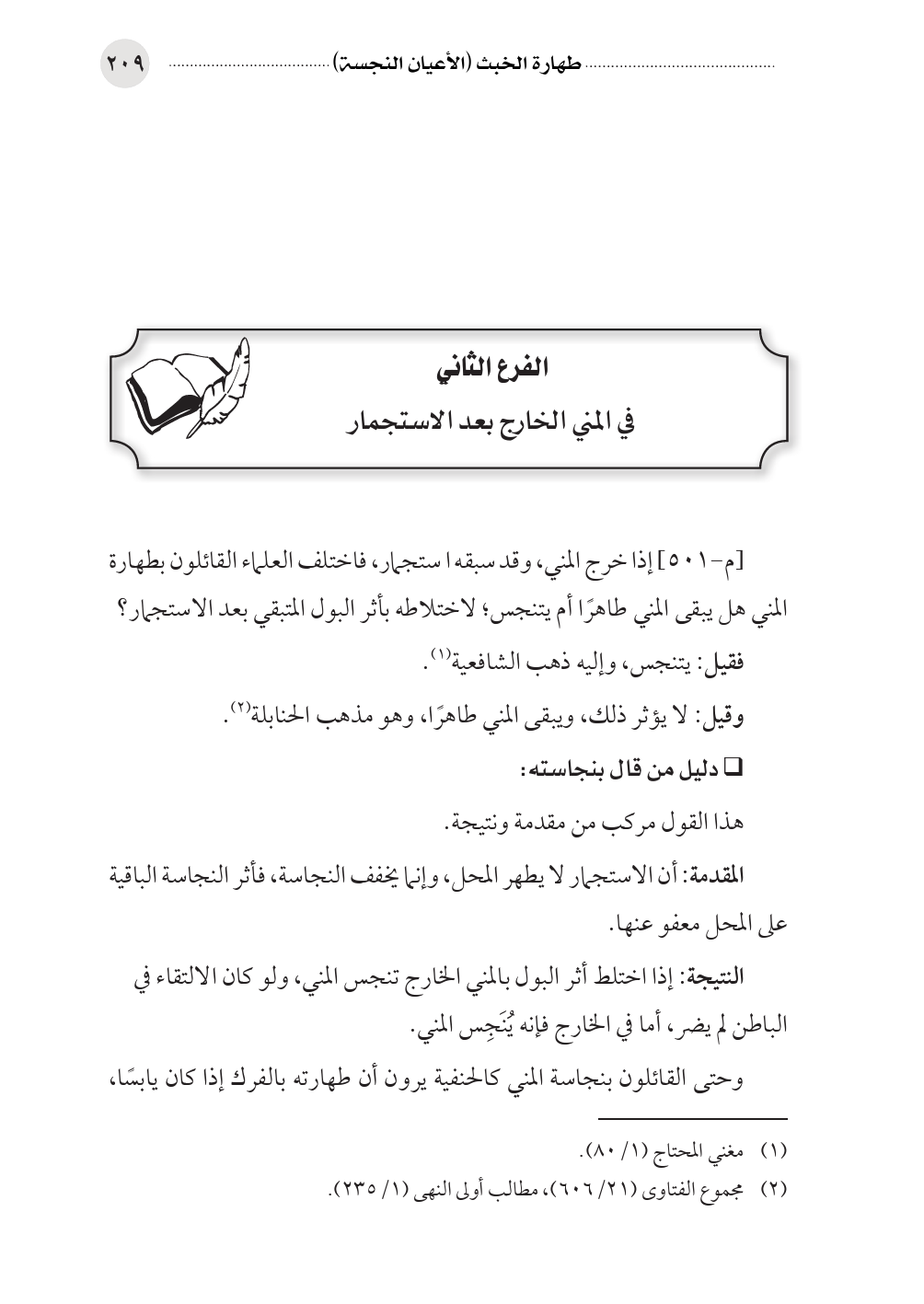 الفرع الثاني في المني الخارج بعد الاستجمار
