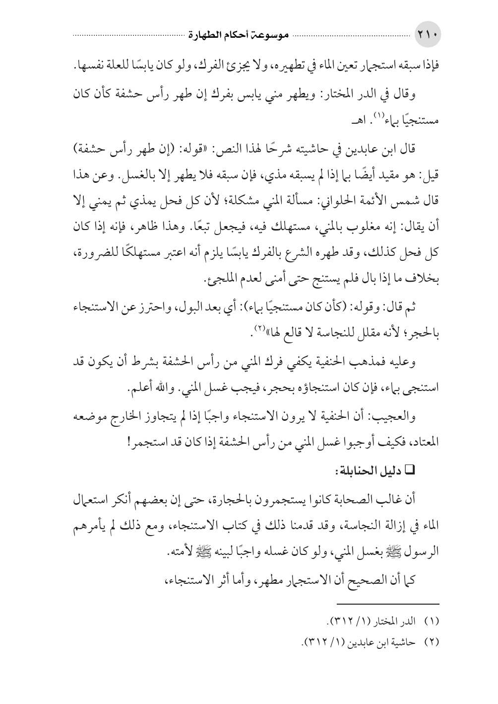 (¬٢) حاشية ابن عابدين (١/ ٣١٢).