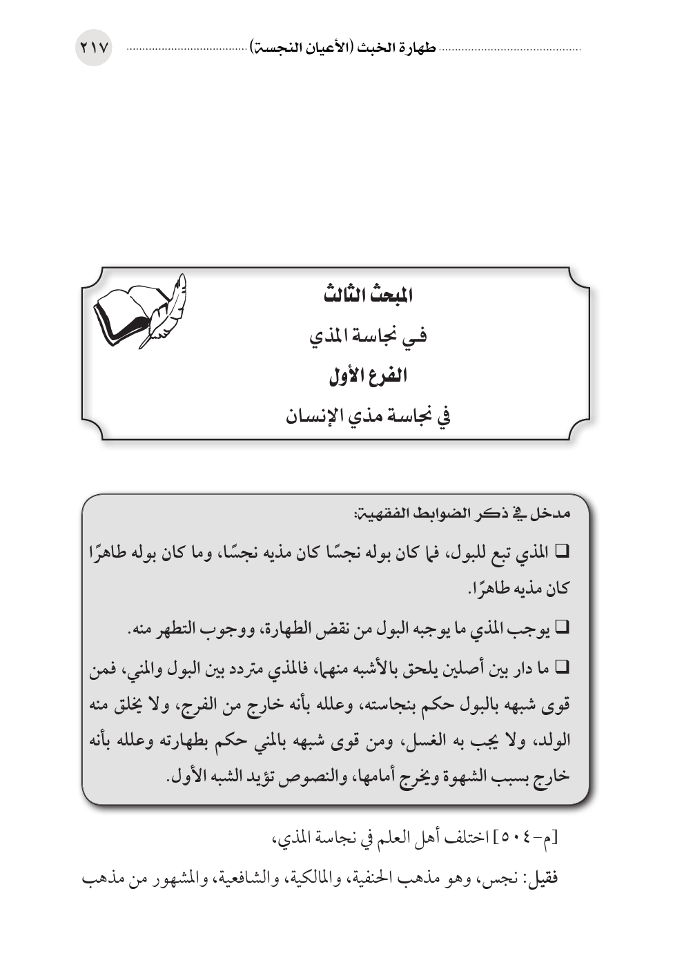 الفرع الأول في نجاسة مذي الإنسان