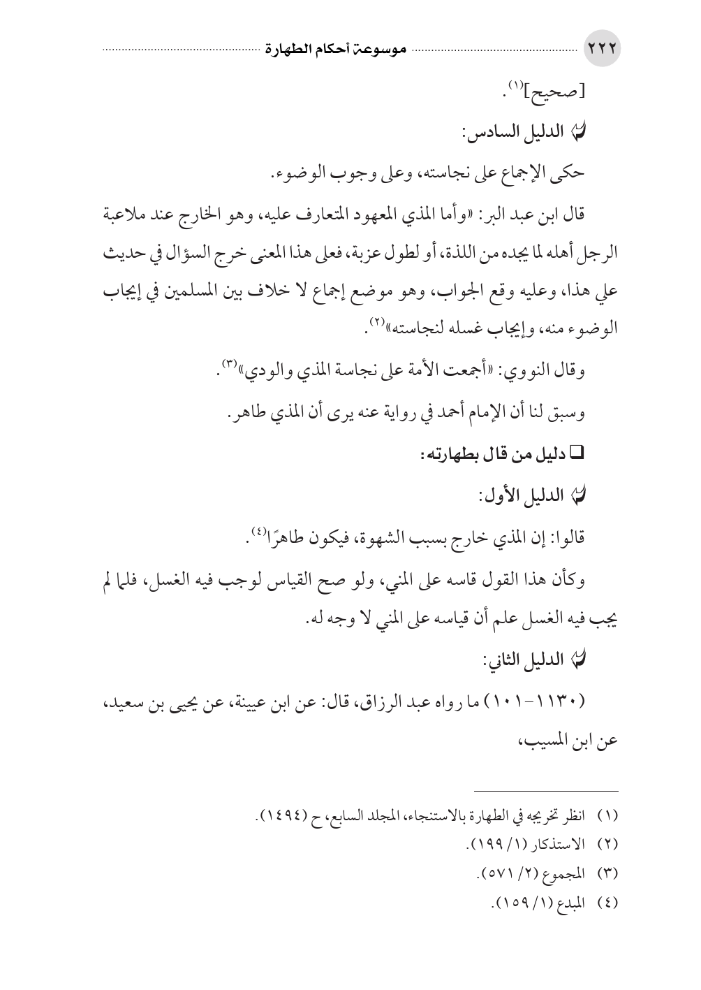 (¬١) انظر تخريجه في الطهارة بالاستنجاء، المجلد السابع، ح (١٤٩٤).