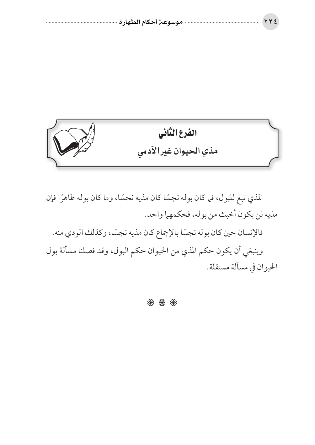 وينبغي أن يكون حكم المذي من الحيوان حكم البول، وقد فصلنا مسألة بول الحيوان في مسألة مستقلة.
