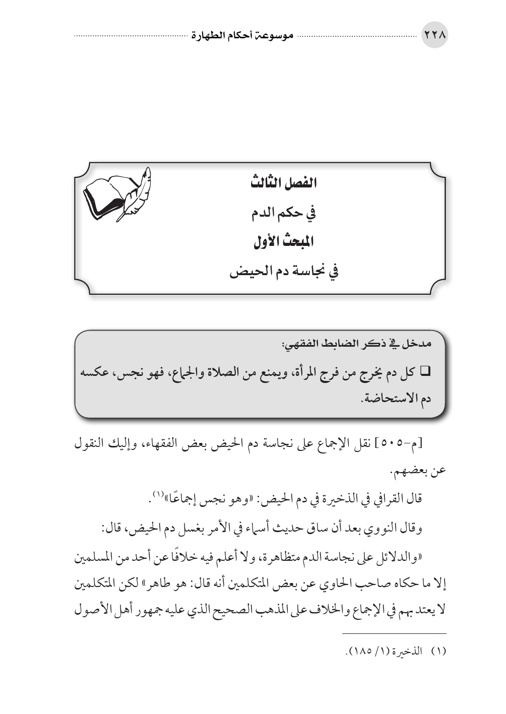 قال القرافي في الذخيرة في دم الحيض: «وهو نجس إجماعًا» (¬١).