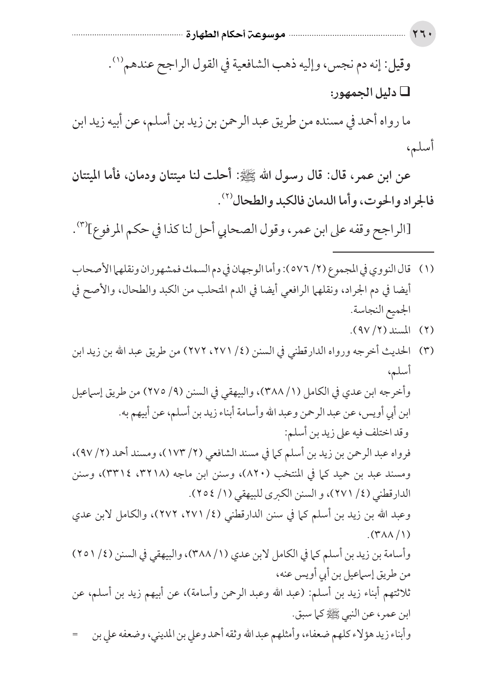 (¬١) قال النووي في المجموع (٢/ ٥٧٦): وأما الوجهان في دم السمك فمشهوران ونقلهما الأصحاب أيضا في دم الجراد، ونقلهما الرافعي أيضا في الدم المتحلب من الكبد والطحال، والأصح في الجميع النجاسة.