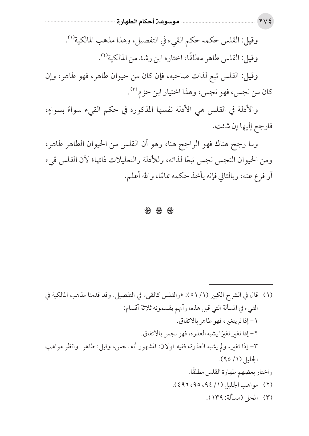 وقيل: القلس طاهر مطلقًا، اختاره ابن رشد من المالكية (¬٢).