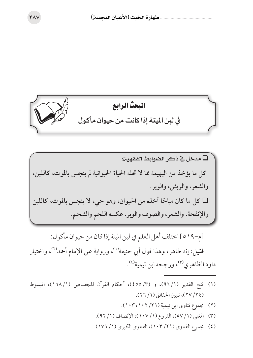 المبحث الرابع في لبن الميتة إذا كانت من حيوان مأكول