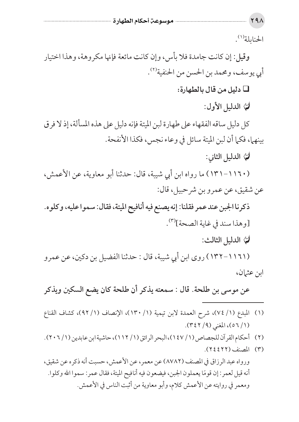 (¬١) المبدع (١/ ٧٤)، شرح العمدة لابن تيمية (١/ ١٣٠)، الإنصاف (١/ ٩٢)، كشاف القناع (١/ ٥٦)، المغني (٩/ ٣٤٢).