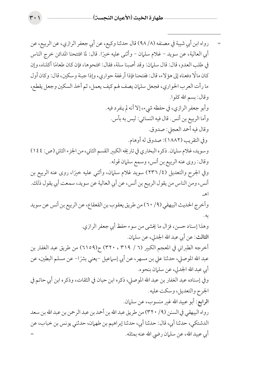 وفي الجرح والتعديل (٤/ ٢٣٦) سويد غلام سلمان، وأثني عليه خيرًا، روى عنه الربيع بن أنس، ومن الناس من يقول الربيع بن أنس، عن أبي العالية عن سويد، سمعت أبي يقول ذلك. اهـ