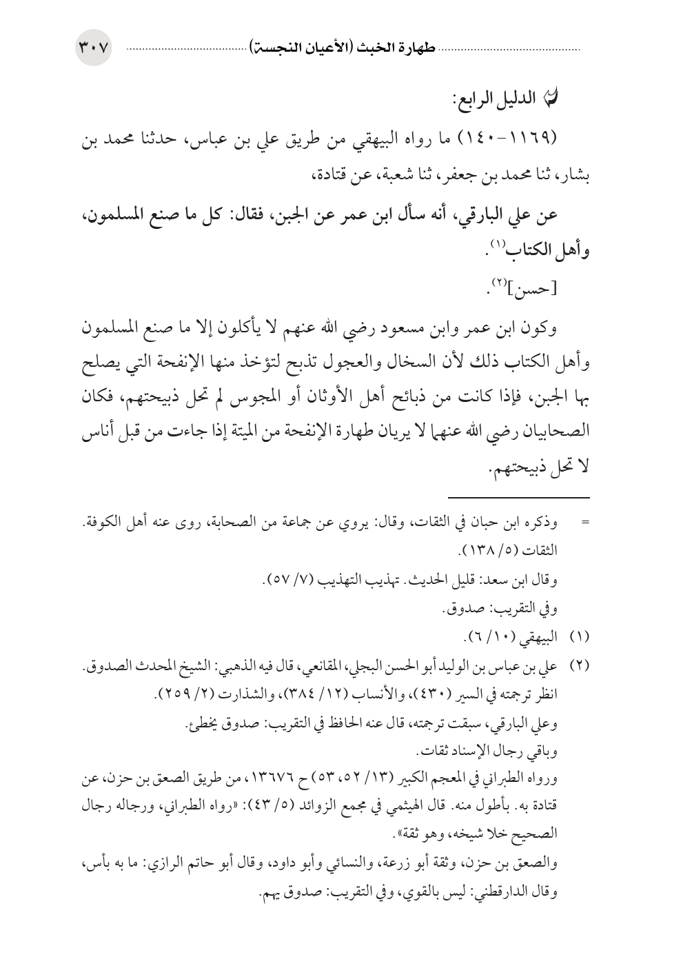 وكون ابن عمر وابن مسعود رضي الله عنهم لا يأكلون إلا ما صنع المسلمون وأهل الكتاب ذلك لأن السخال والعجول تذبح لتؤخذ منها الإنفحة التي يصلح بها الجبن، فإذا كانت من ذبائح أهل الأوثان أو المجوس لم تحل ذبيحتهم، فكان الصحابيان رضي الله عنهما لا يريان طهارة الإنفحة من الميتة إذا جاءت من قبل أناس لا تحل ذبيحتهم.