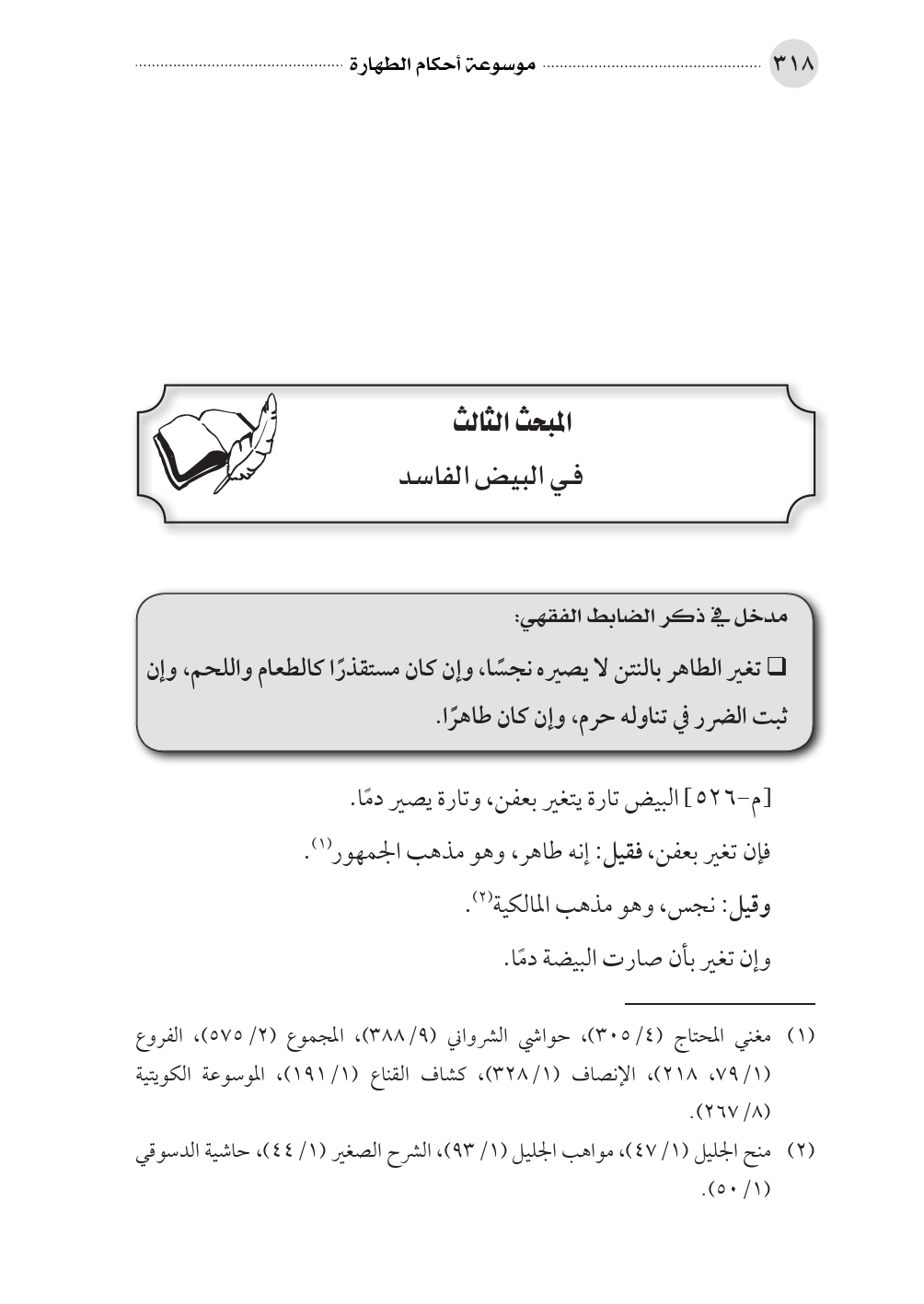 (¬١) مغني المحتاج (٤/ ٣٠٥)، حواشي الشرواني (٩/ ٣٨٨)، المجموع (٢/ ٥٧٥)، الفروع (١/ ٧٩، ٢١٨)، الإنصاف (١/ ٣٢٨)، كشاف القناع (١/ ١٩١)، الموسوعة الكويتية (٨/ ٢٦٧).