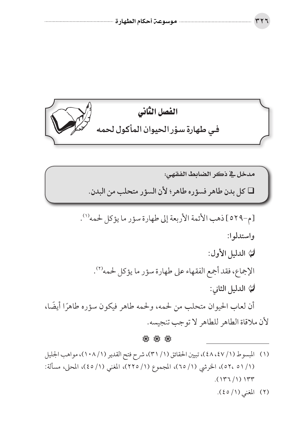 الإجماع، فقد أجمع الفقهاء على طهارة سؤر ما يؤكل لحمه (¬٢).