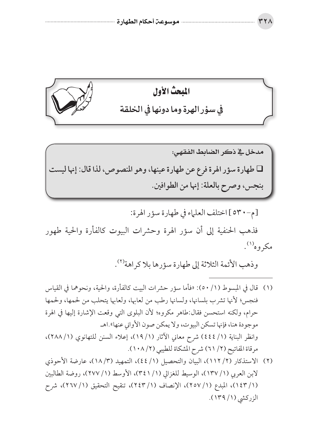 المبحث الأول في سؤر الهرة وما دونها في الخلقة