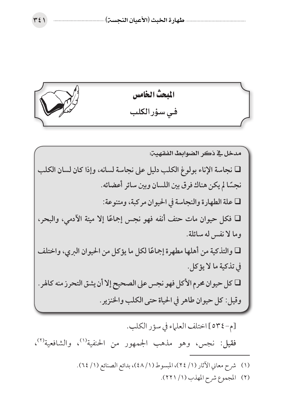 • نجاسة الإناء بولوغ الكلب دليل على نجاسة لسانه، وإذا كان لسان الكلب نجسًا لم يكن هناك فرق بين اللسان وبين سائر أعضائه.