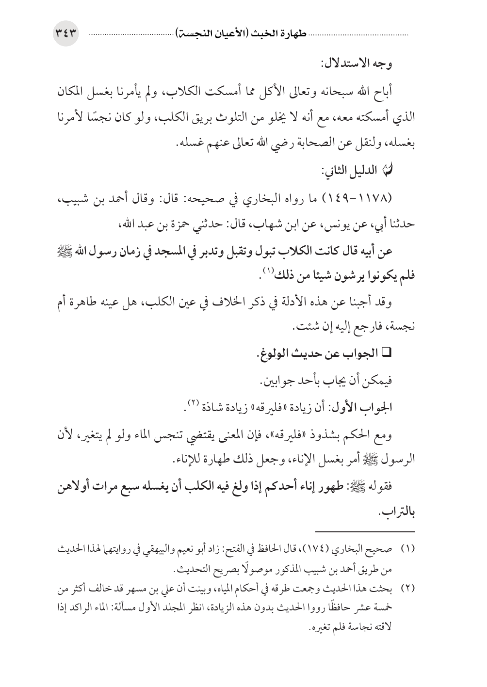 وقد أجبنا عن هذه الأدلة في ذكر الخلاف في عين الكلب، هل عينه طاهرة أم نجسة، فارجع إليه إن شئت.