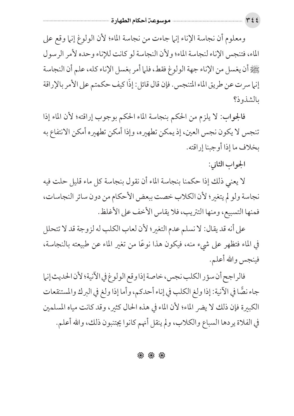 فالجواب: لا يلزم من الحكم بنجاسة الماء الحكم بوجوب إراقته؛ لأن الماء إذا تنجس لا يكون نجس العين، إذ يمكن تطهيره، وإذا أمكن تطهيره أمكن الانتفاع به بخلاف ما إذا أوجبنا إراقته.