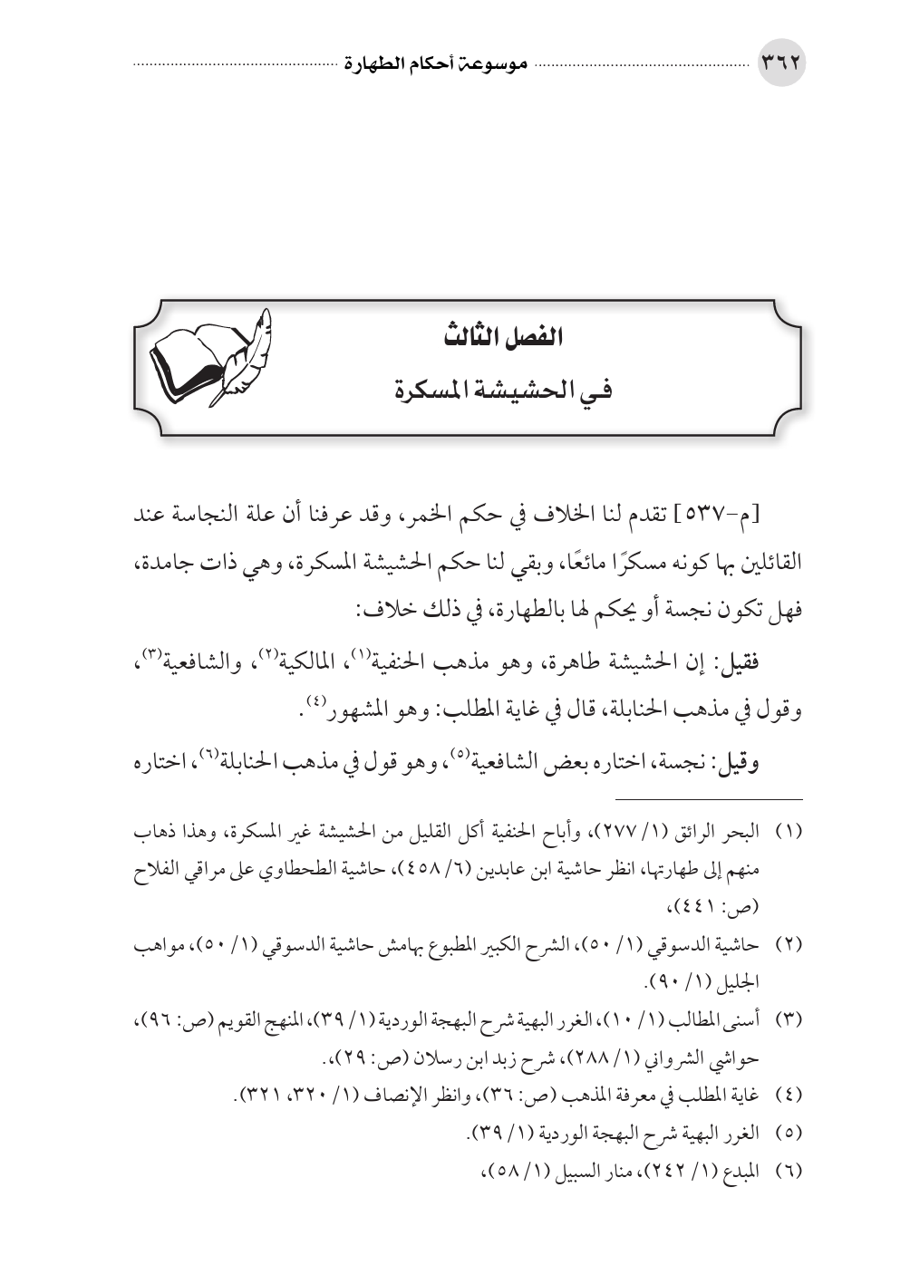 (¬١) البحر الرائق (١/ ٢٧٧)، وأباح الحنفية أكل القليل من الحشيشة غير المسكرة، وهذا ذهاب منهم إلى طهارتها، انظر حاشية ابن عابدين (٦/ ٤٥٨)، حاشية الطحطاوي على مراقي الفلاح (ص: ٤٤١)،