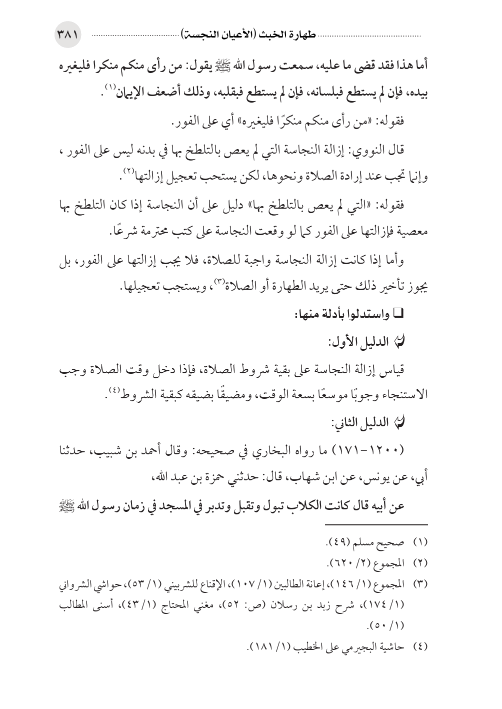 (¬٣) المجموع (١/ ١٤٦)، إعانة الطالبين (١/ ١٠٧)، الإقناع للشربيني (١/ ٥٣)، حواشي الشرواني (١/ ١٧٤)، شرح زبد بن رسلان (ص: ٥٢)، مغني المحتاج (١/ ٤٣)، أسنى المطالب (١/ ٥٠).