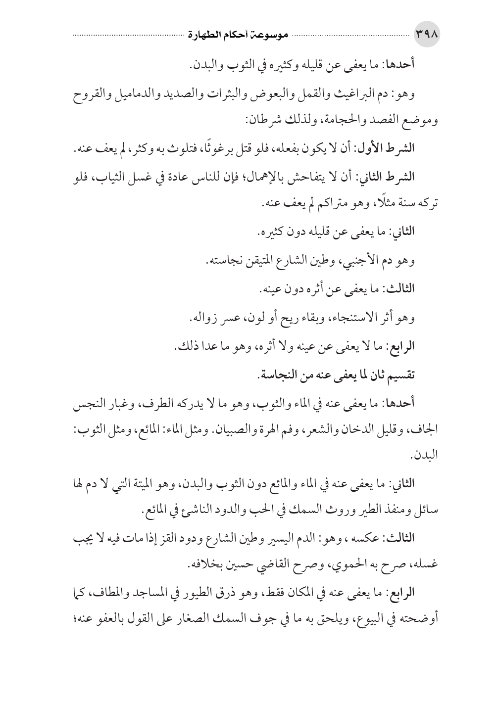 تقسيم ثان لما يعفى عنه من النجاسة.