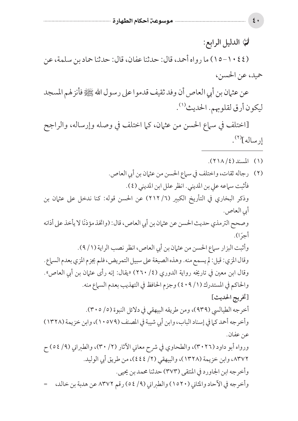 (١٠٤٤ - ١٥) ما رواه أحمد، قال: حدثنا عفان، قال: حدثنا حماد بن سلمة، عن حميد، عن الحسن،