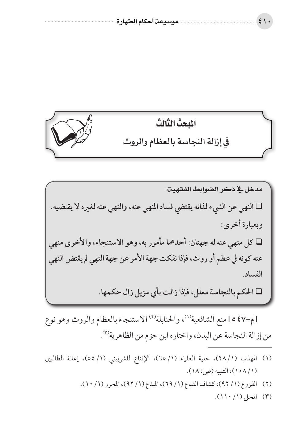 المبحث الثالث في إزالة النجاسة بالعظام والروث