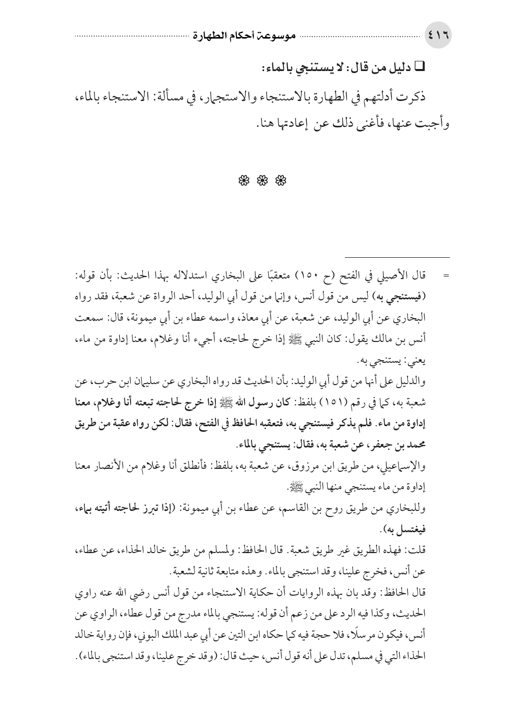 • دليل من قال: لا يستنجي بالماء: