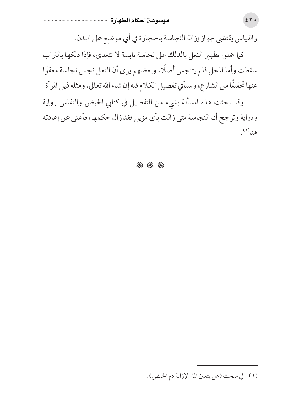 (¬١) في مبحث (هل يتعين الماء لإزالة دم الحيض).