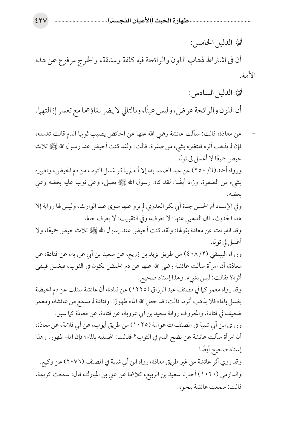 أن اللون والرائحة عرض، وليس عينًا، وبالتالي لا يضر بقاؤهما مع تعسر إزالتهما.
