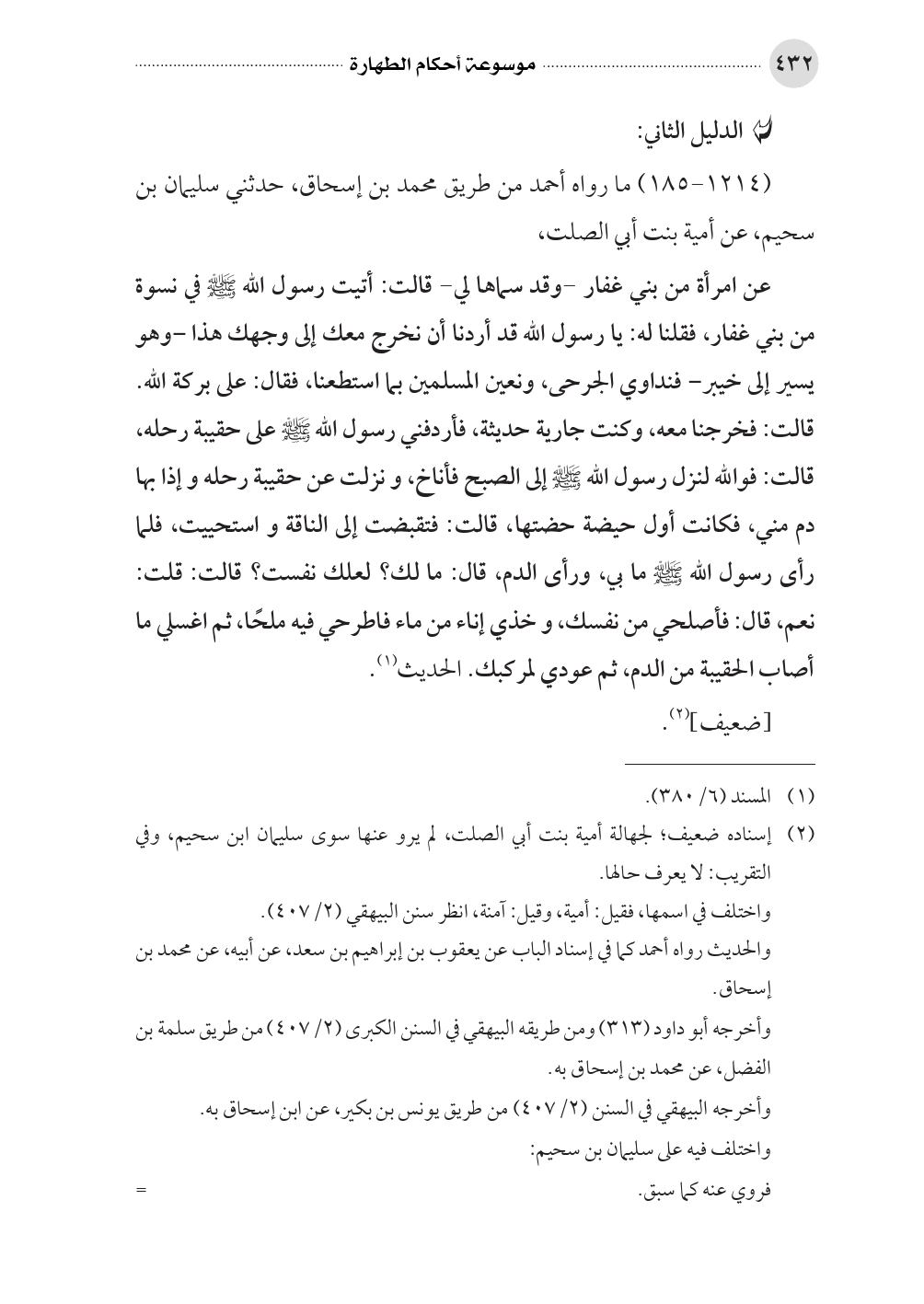 (١٢١٤ - ١٨٥) ما رواه أحمد من طريق محمد بن إسحاق، حدثني سليمان بن سحيم، عن أمية بنت أبي الصلت،