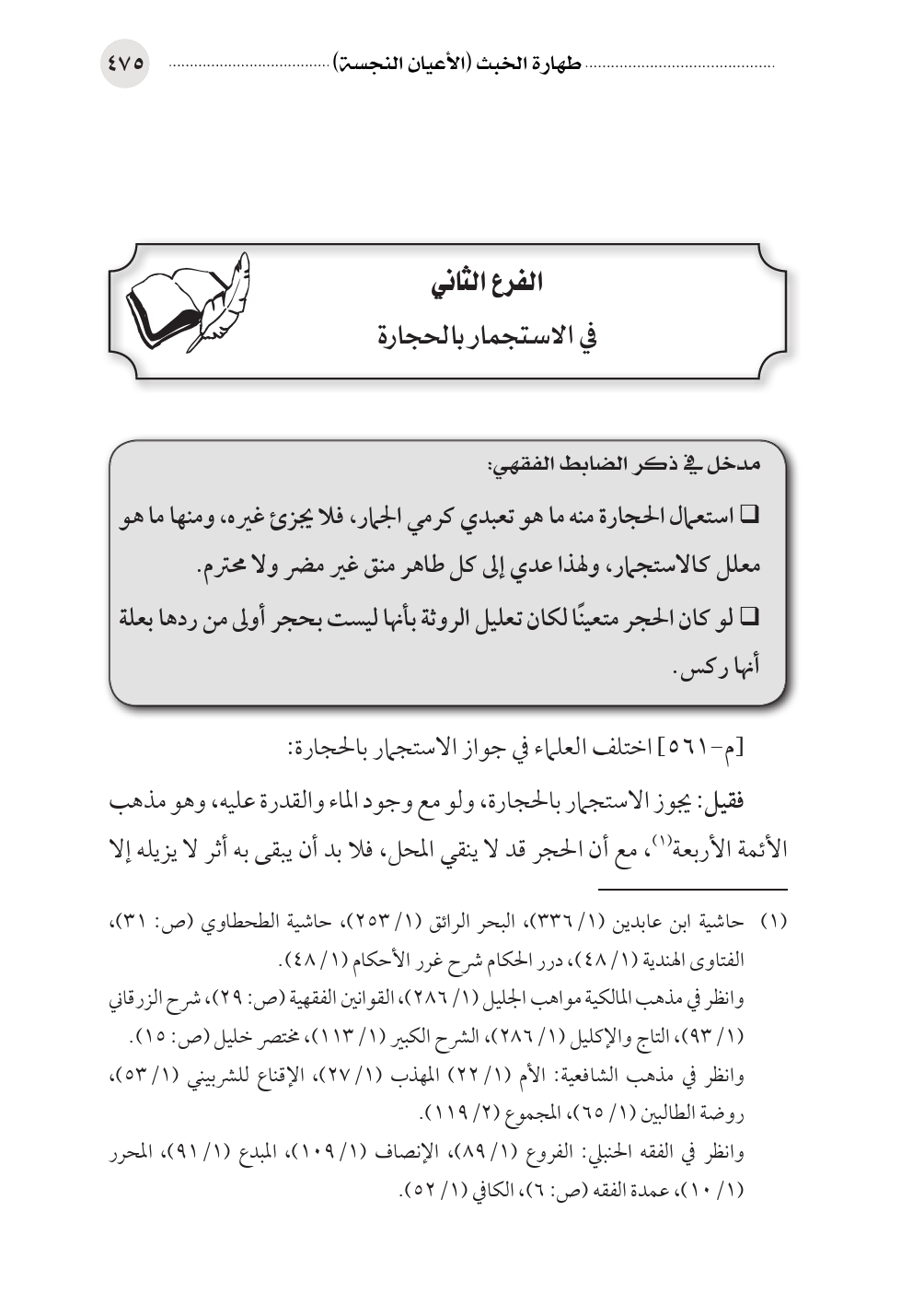 الفرع الثاني في الاستجمار بالحجارة