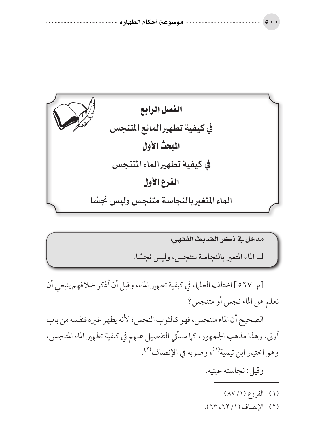 الفصل الرابع في كيفية تطهير المائع المتنجس