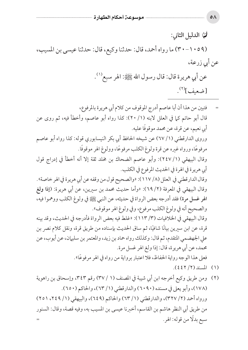 (¬٢) ومن طريق وكيع أخرجه ابن أبي شيبة في المصنف (١/ ٣٧) رقم ٣٤٣، وإسحاق بن راهوية (١٧٨)، وأبو يعلى في مسنده (٦٠٩٠) والدارقطني (١/ ٦٣)، والحاكم (٦٥٠).