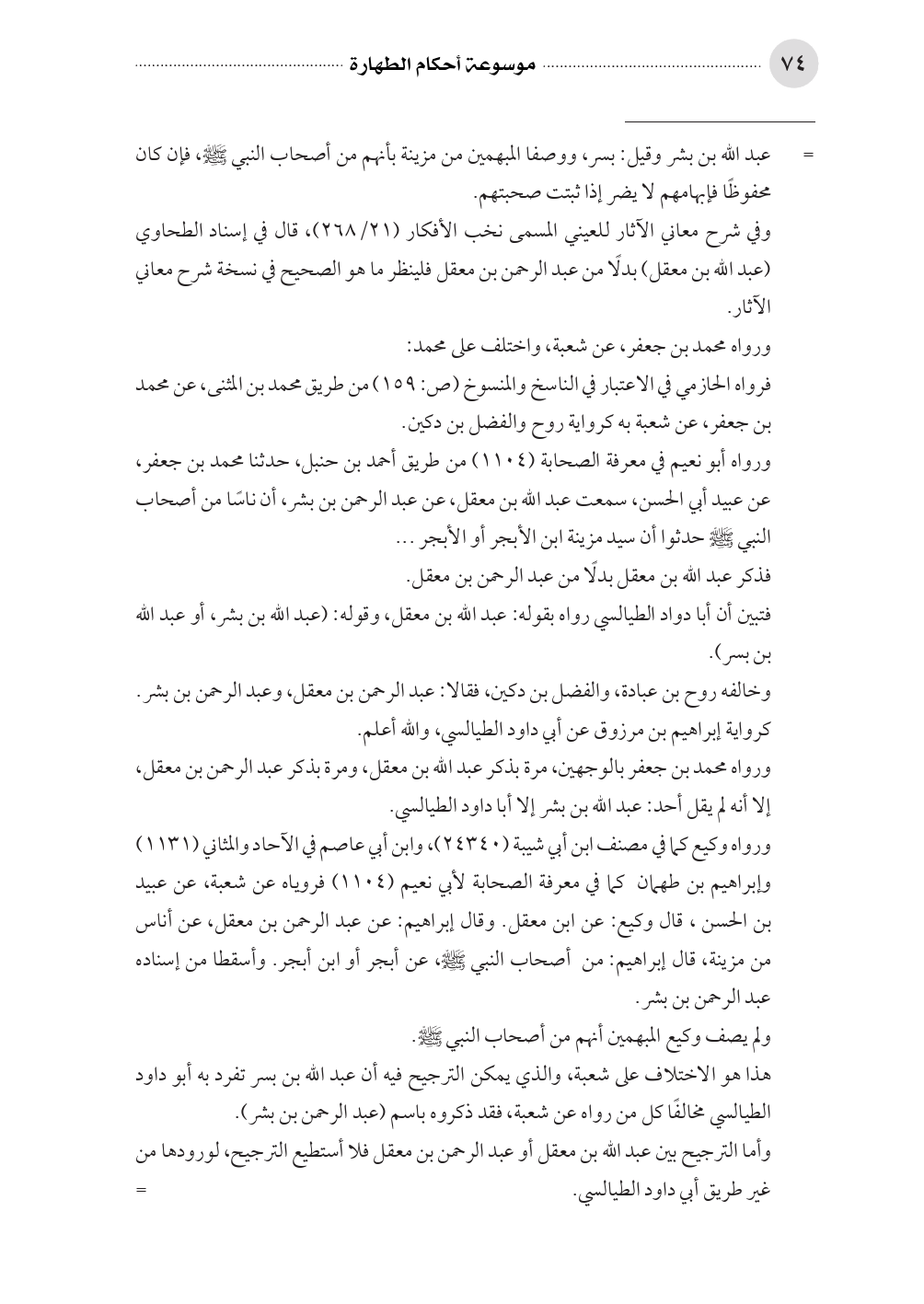 ورواه محمد بن جعفر بالوجهين، مرة بذكر عبد الله بن معقل، ومرة بذكر عبد الرحمن بن معقل، إلا أنه لم يقل أحد: عبد الله بن بشر إلا أبا داود الطيالسي.