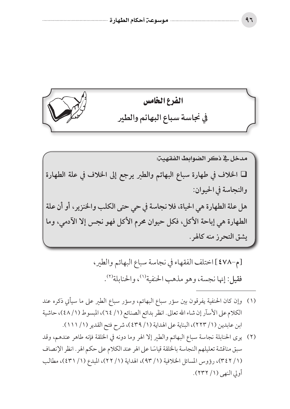 (¬١) وإن كان الحنفية يفرقون بين سؤر سباع البهائم، وسؤر سباع الطير على ما سيأتي ذكره عند الكلام على الأسآر إن شاء الله تعالى. انظر بدائع الصنائع (١/ ٦٤)، المبسوط (١/ ٤٨)، حاشية ابن عابدين (١/ ٢٢٣)، البناية على الهداية (١/ ٤٣٩)، شرح فتح القدير (١/ ١١١).