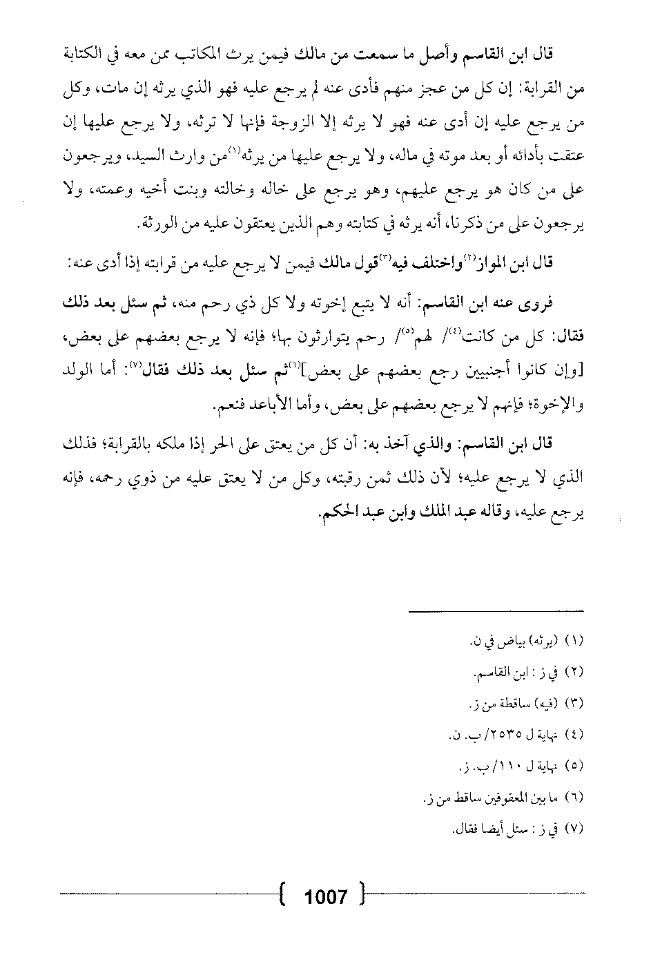 قال ابن القاسم وأصل ما سمعت من مالك فيمن يرث المكاتب ممن معه في الكتابة من القرابة: إن كل من عجز منهم فأدى عنه لم يرجع عليه فهو الذي يرثه إن مات، وكل من يرجع عليه إن أدى عنه فهو لا يرثه إلا الزوجة فإنها لا ترثه، ولا يرجع عليها إن عتقت بأدائه أو بعد موته في ماله، ولا يرجع عليها من يرثه من وارث السيد، ويرجعون على من كان هو يرجع عليهم، وهو يرجع على خاله وخالته وبنت أخيه وعمته، ولا يرجعون على من ذكرنا، أنه يرثه في كتابته وهم الذين يعتقون عليه من الورثة.