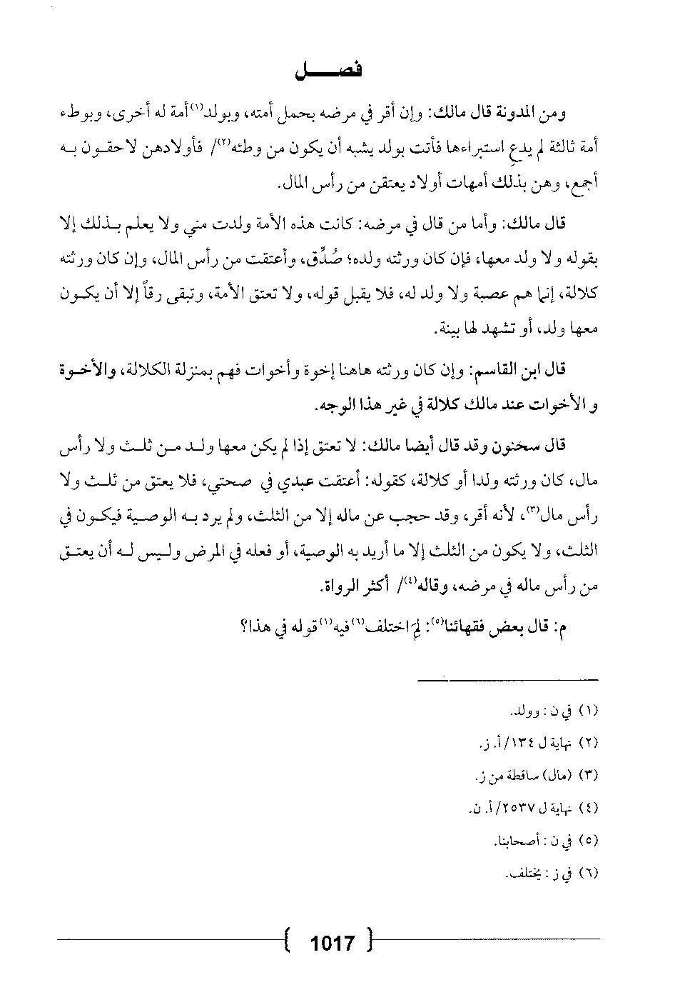 قال سحنون وقد قال أيضاً مالك: لا تعتق إذا لم يكن معها ولد من ثلث ولا رأس مال، كان ورثته ولداً أو كلالة، كقوله: أعتقت عبدي في صحتي، فلا يعتق من ثلث ولا رأس مال، لأنه اقر، وقد حجب عن ماله إلا من الثلث، ولم يرد به الوصية فيكون في الثلث، ولا يكون من الثلث إلا ما أريد به الوصية، أو فعله في المرض وليس له أن يعتق من رأس ماله في مرضه، وقاله أكثر الرواة.