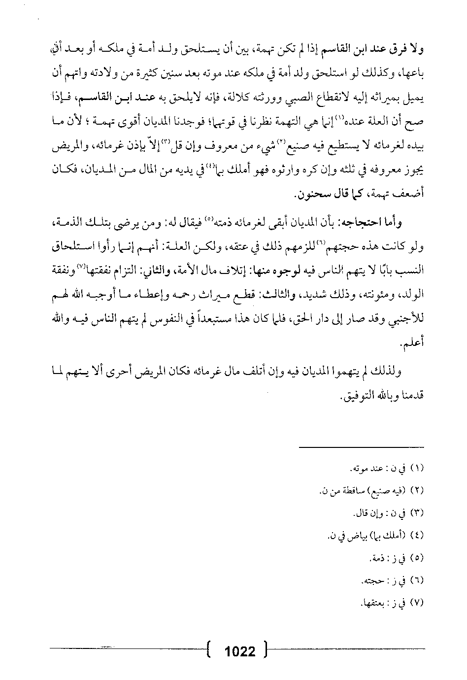 ولا فرق عند ابن القاسم إذا لم تكن تهمة، بين أن يستلحق ولد أمة في ملكه أو بعد أن باعها، وكذلك لو استلحق ولد أمة في ملكه عند موته بعد سنين كثيرة من ولادته واتهم أن يميل بميراثه إليه لانقطاع الصبي وورثته كلالة، فإنه لا يلحق به عند ابن القاسم، فإذا صح أن العلة عنده إنما هي التهمة نظرنا في قوتهما؛ فوجدنا المديان أقوى تهمة؛ لأن ما بيده لغرمائه لا يستطيع فيه صنيع شيء من معروف وإن قل إلا بإذن غرمائه، والمريض يجوز معروفه في ثلثه وإن كره وارثوه فهو أملك بما في يديه من المال من المديان، فكان أضعف تهمة، كما قال سحنون.