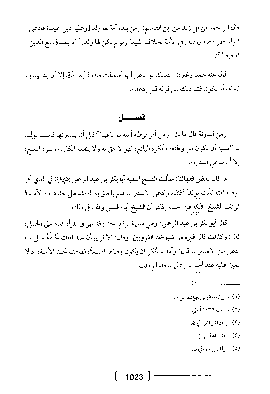قال أبو بكر بن عبد الرحمن: وهي شبهة ترفع الحد وقد تهراق المرأة الدم على الحمل، قال: وكذلك قال غيره من شيوخنا القرويين، وقال: ألا ترى أن عبد الملك يُحلِفُه على ما ادعى من الاستبراء، قال: وأما لو أنكر أن يكون وطأها أصلاً؛ فهاهنا تحد الأمة، إذ لا يمين عليه عند أحد من علمائنا فاعلم ذلك.