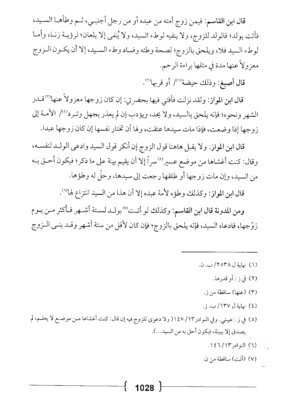 قال ابن المواز: ولقد نزلت فأفتى فيها بحضرتي: إن كان زوجها معزولاً عنها قدر الشهر ونحوه؛ فإنه يلحق بالسيد، ولا يحد، ويؤدب إن لم يعذر بجهل وترد الأمة إلى زوجها إذا وضعت، فإذا مات سيدها عتقت، ولها أن تختار نفسها إن كان زوجها عبداً.
