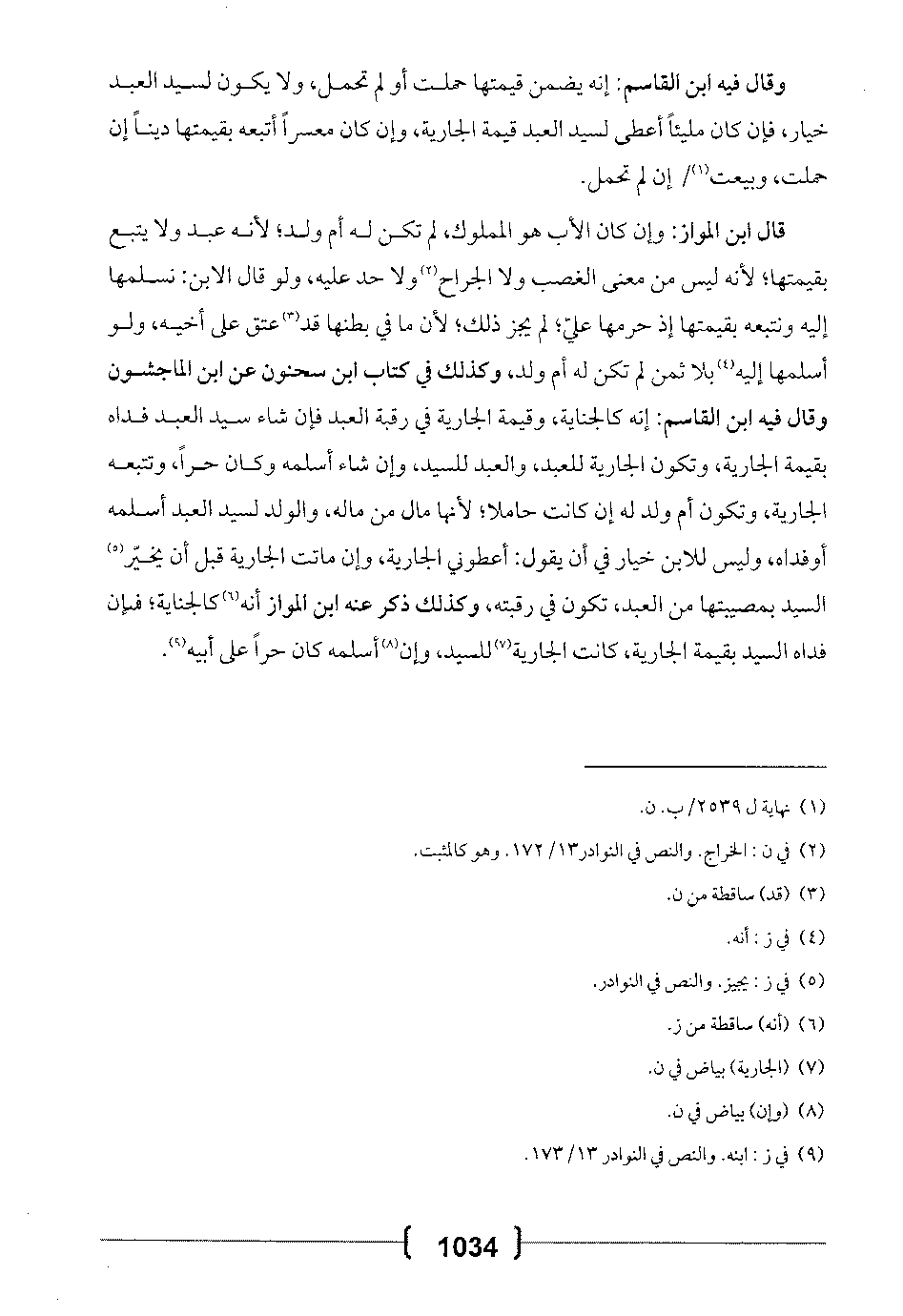 وقال فيه ابن القاسم: إنه يضمن قيمتها حملت أو لم تحمل، ولا يكون لسيد العبد خيار، فإن كان مليئاً أعطي لسيد العبد قيمة الجارية، وإن كان معسراً أتبعه بقيمتها ديناً إن حملت، وبيعت إن لم تحمل.