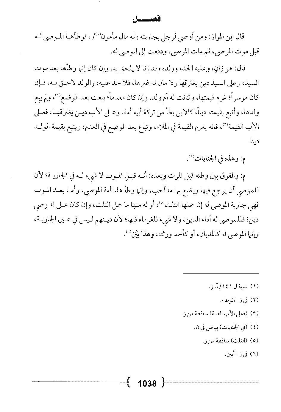 م: والفرق بين وطئه قبل الموت وبعده: أنه قبل الموت لا شيء له في الجارية؛ لأن للموصي أن يرجع فيها ويضع بها ما أحب، وإنما وطأ هذا أمة الموصي، وأما بعد الموت فهي جارية الموصى له إن حملها الثلث، أو له منها ما حمل الثلث، وإن كان على الموصي دين؛ فللموصى له أداء الدين، ولا شيء للغرماء فيها؛ لأن دينهم ليس في عين الجارية، وإنما الموصى له كالمديان، أو كأحد ورثته، وهذا بين.