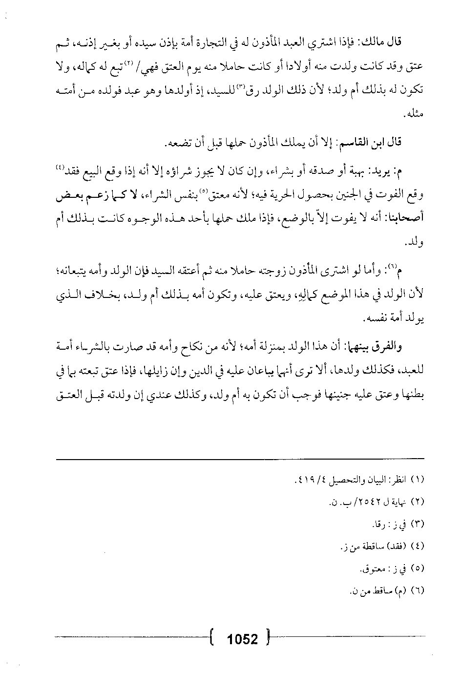 قال ابن القاسم: إلا أن يملك المأذون حملها قبل أن تضعه.