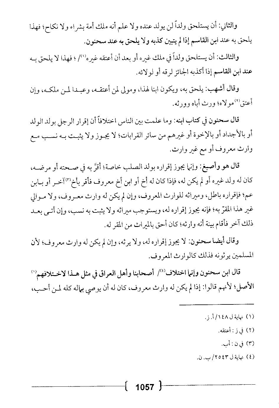 قال ابن سحنون وإنما اختلاف أصحابنا وأهل العراق في مثل هذا لاختلافهم الأصل؛ لأنهم قالوا: إذا لم يكن له وارث معروف، كان له أن يوصي بماله كله لمن أحب،
