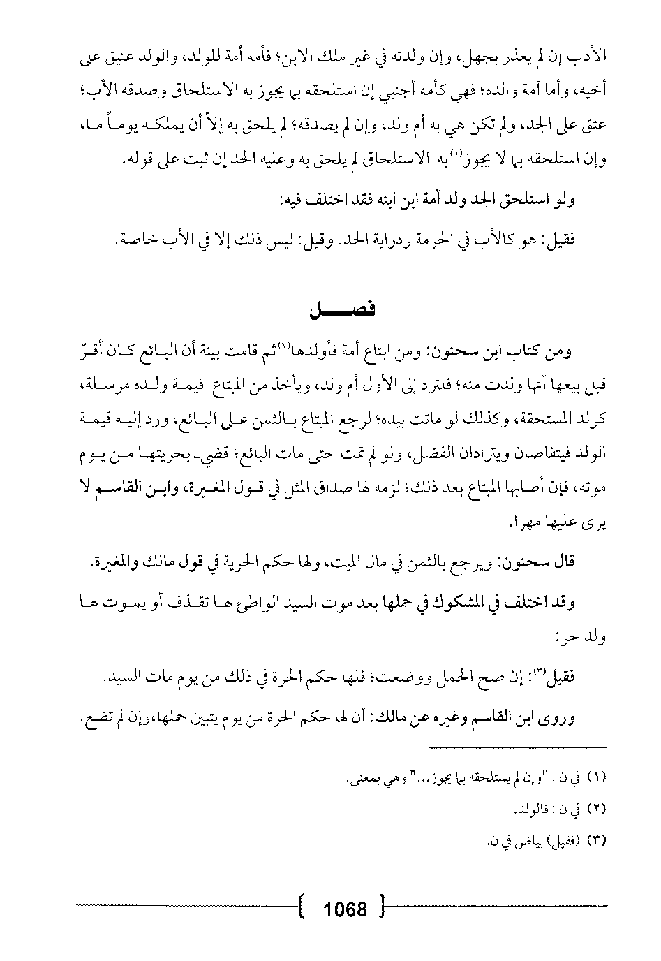 وروى ابن القاسم وغيره عن مالك: أن لها حكم الحرة من يوم يتبين حملها، وإن لم تضع.