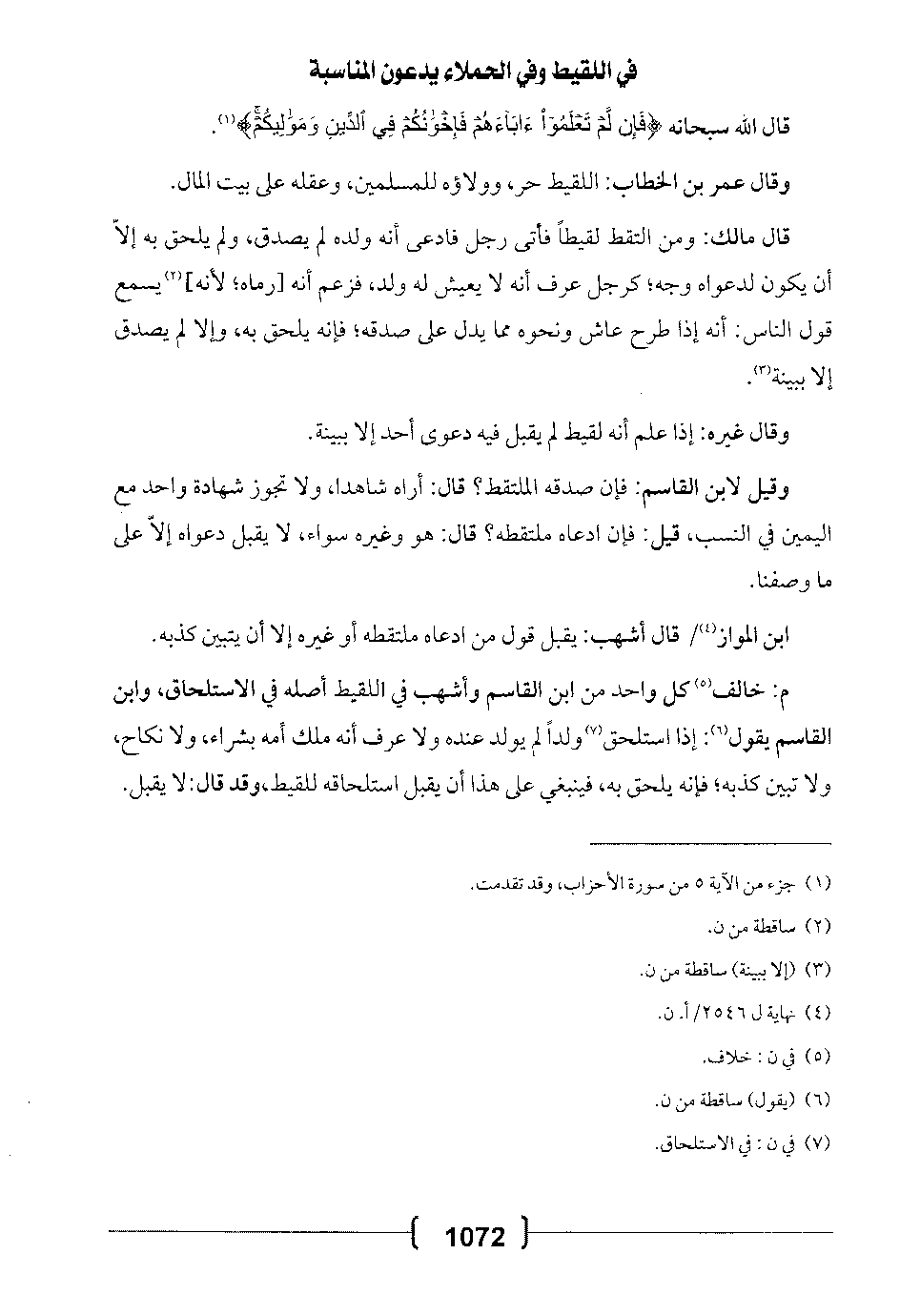 وقيل لابن القاسم: فإن صدقه الملتقط؟ قال: أراه شاهداً، ولا تجوم شهادة واحد من اليمين في النسب، قيل: فإن ادعاه ملتقطه؟ قال: هو وغيره سواء، لا يقبل دعواه إلا على ما وصفنا.