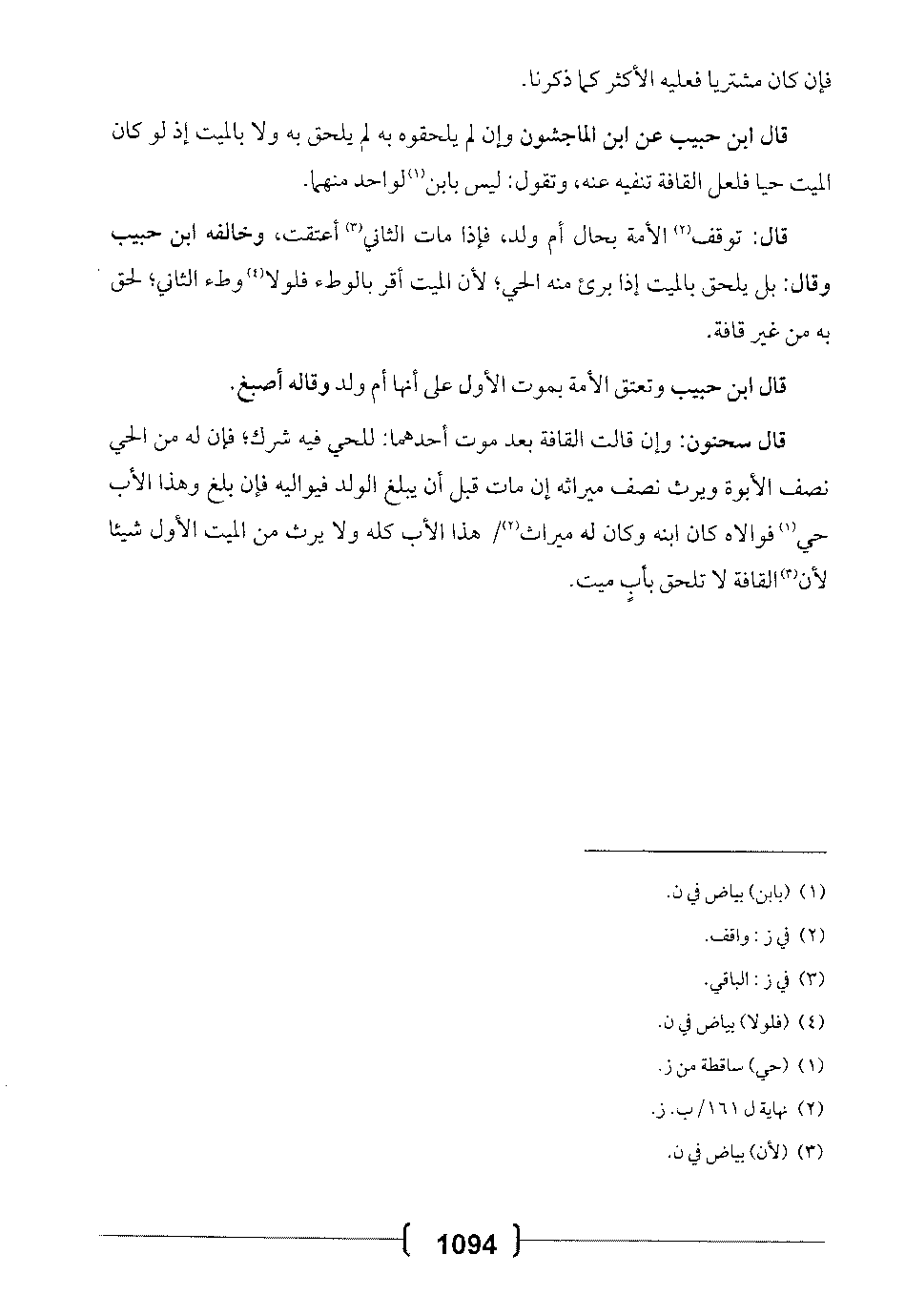 قال: توقف الأمة بحال أم ولد، فإذا مات الثاني أعتقت، وخالفه ابن حبيب وقال: بل يلحق بالميت إذا برئ منه الحي؛ لأن الميت أقر بالوطء فلولا وطء الثاني؛ لحق به من غير قافة.