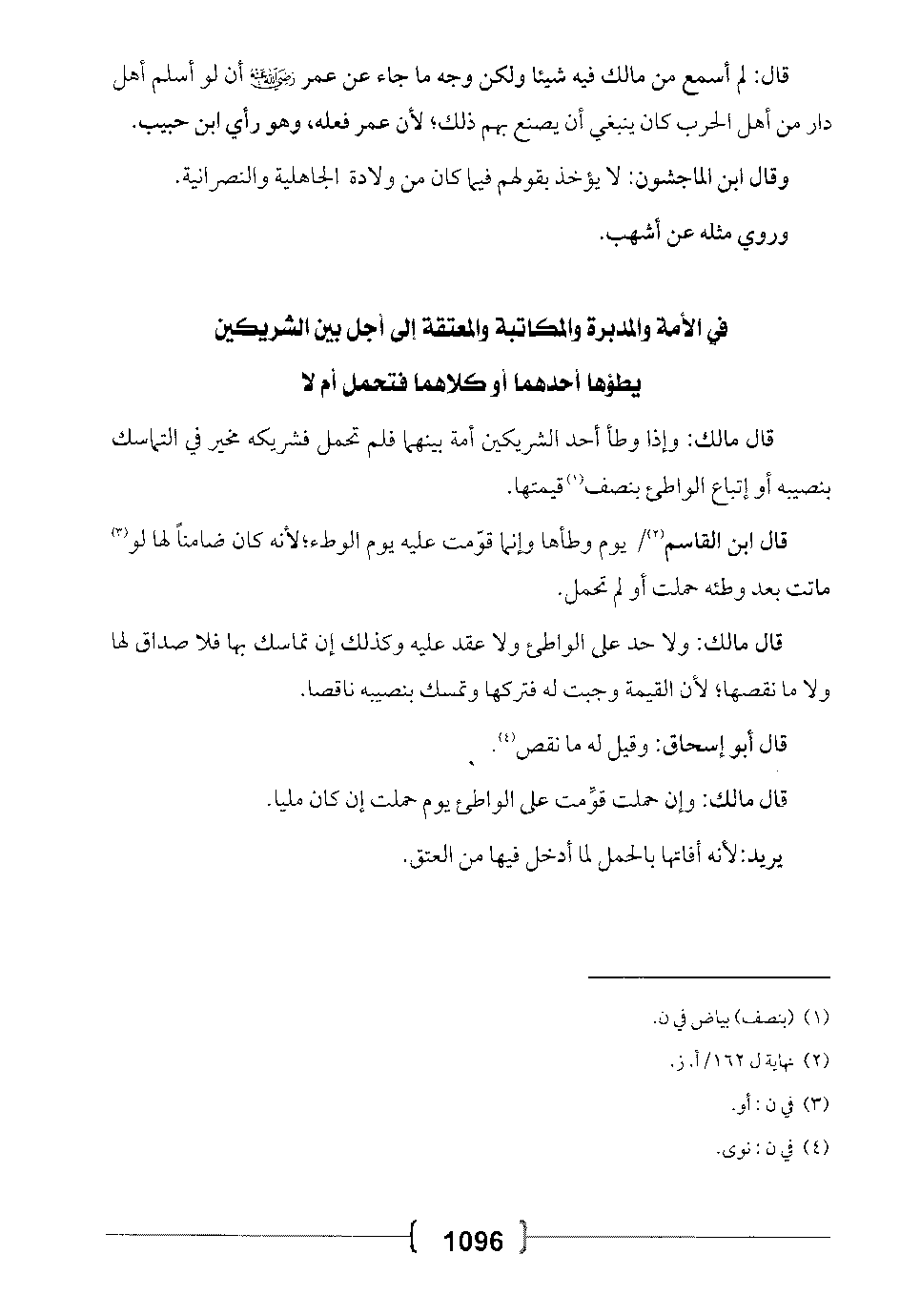 في الأمة والمدبرة والمكاتبة والمعتقة إلى أجل بين الشريكين